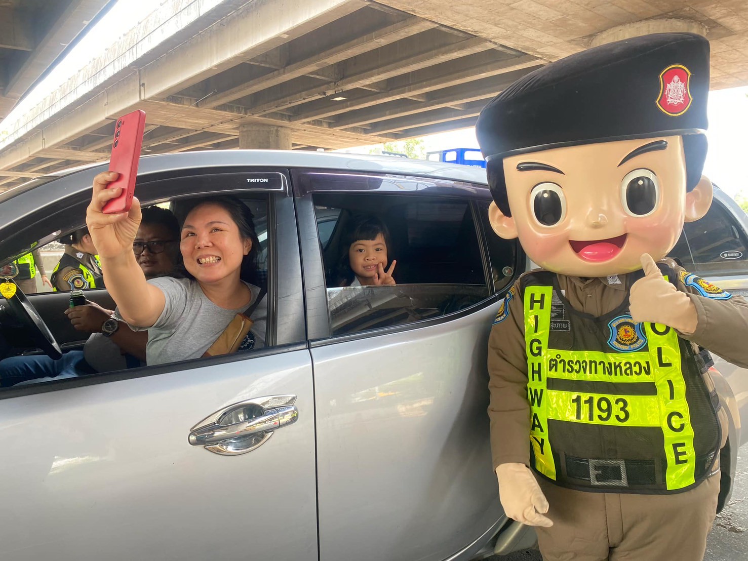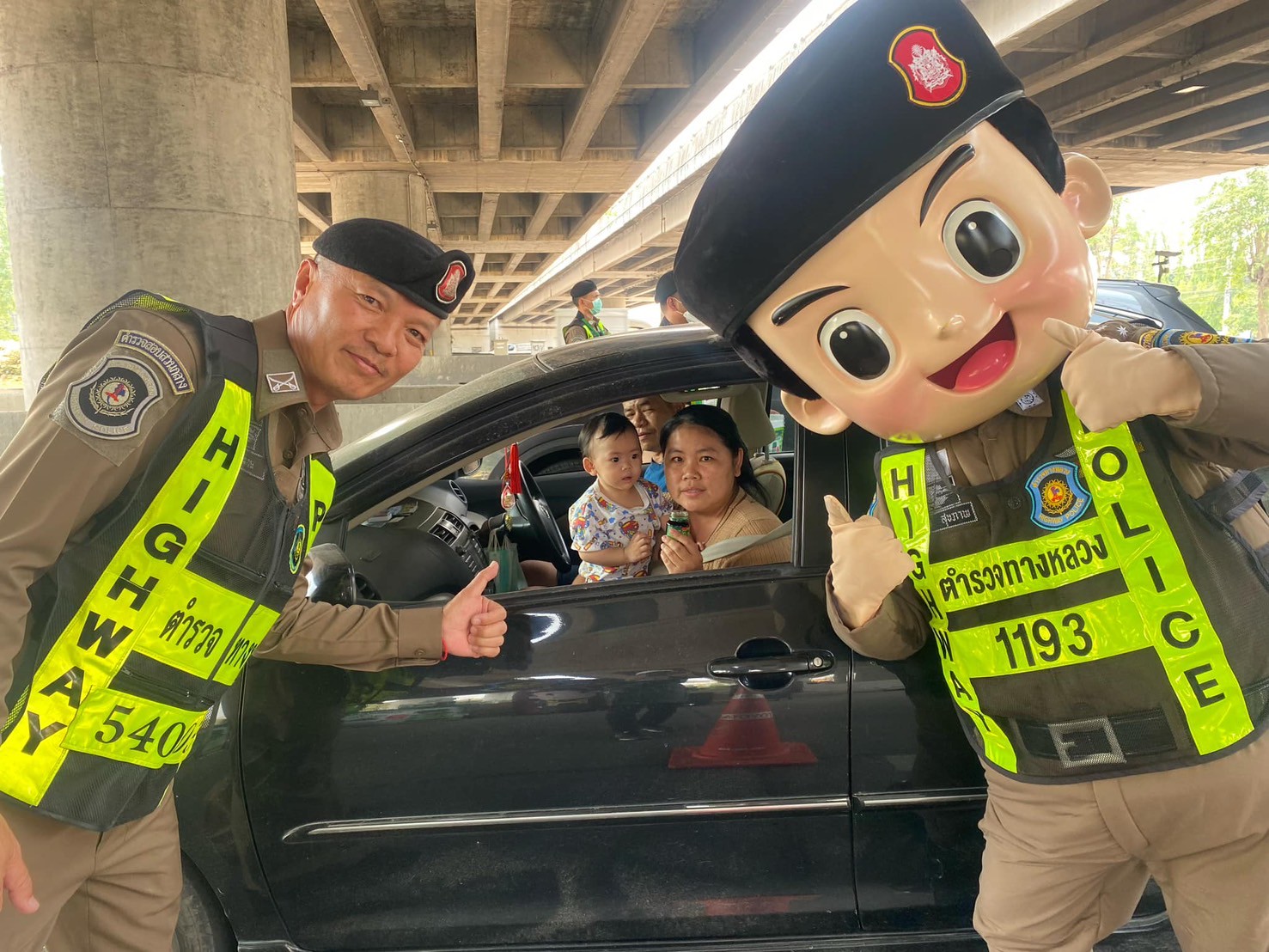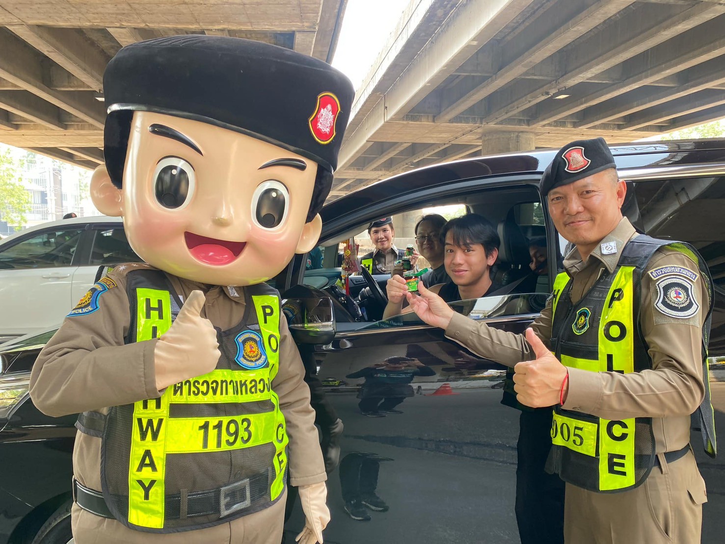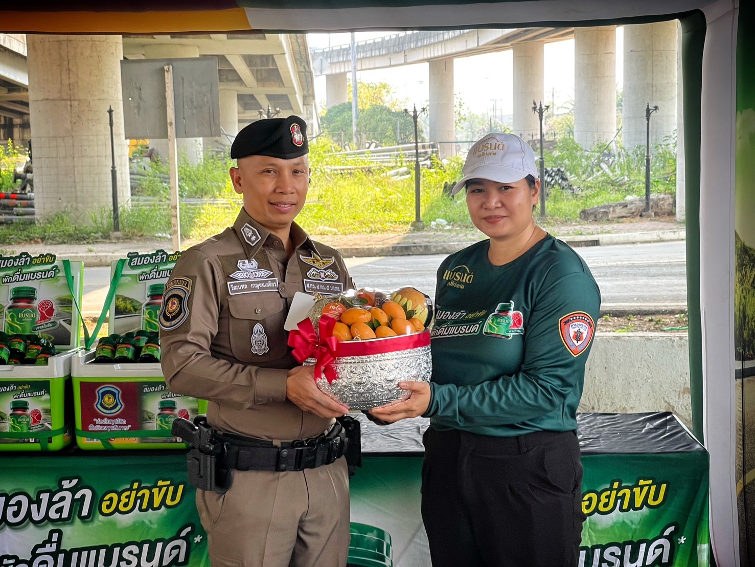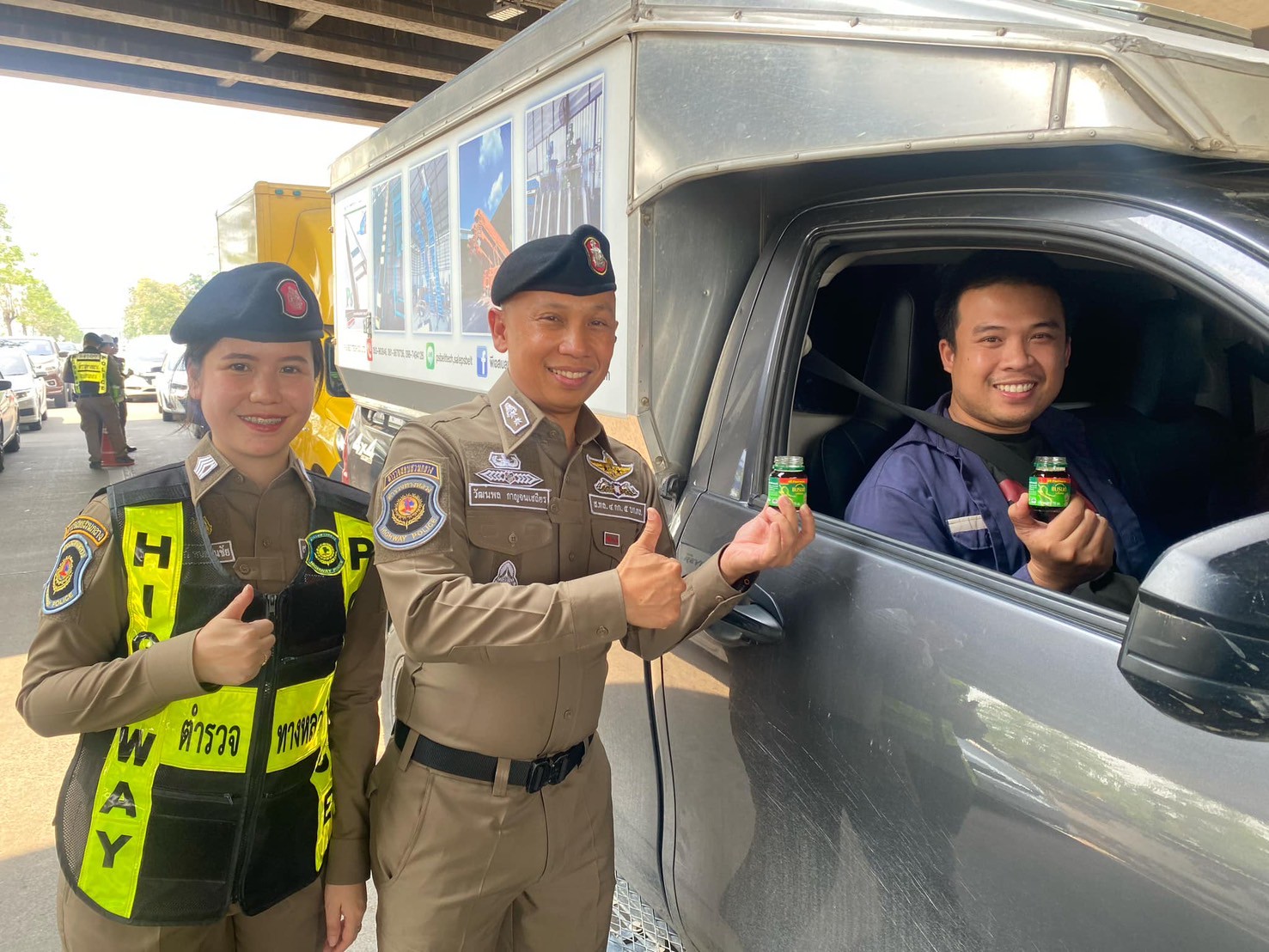 พ.ต.ท.วัฒนพล กาญจนเสถียร.สวญ.ส.ทล.4 กก.5 บก.ทล,พร้อมกำลังเจ้าหน้าที่ตำรวจทางหลวง ร่วมกับพนักงานเจ้าหน้าที่บริษัทแบรนด์ซุปไก่สกัด มีกิจกรรมการแจก “แบรนด์ซุปไก่สกัด”