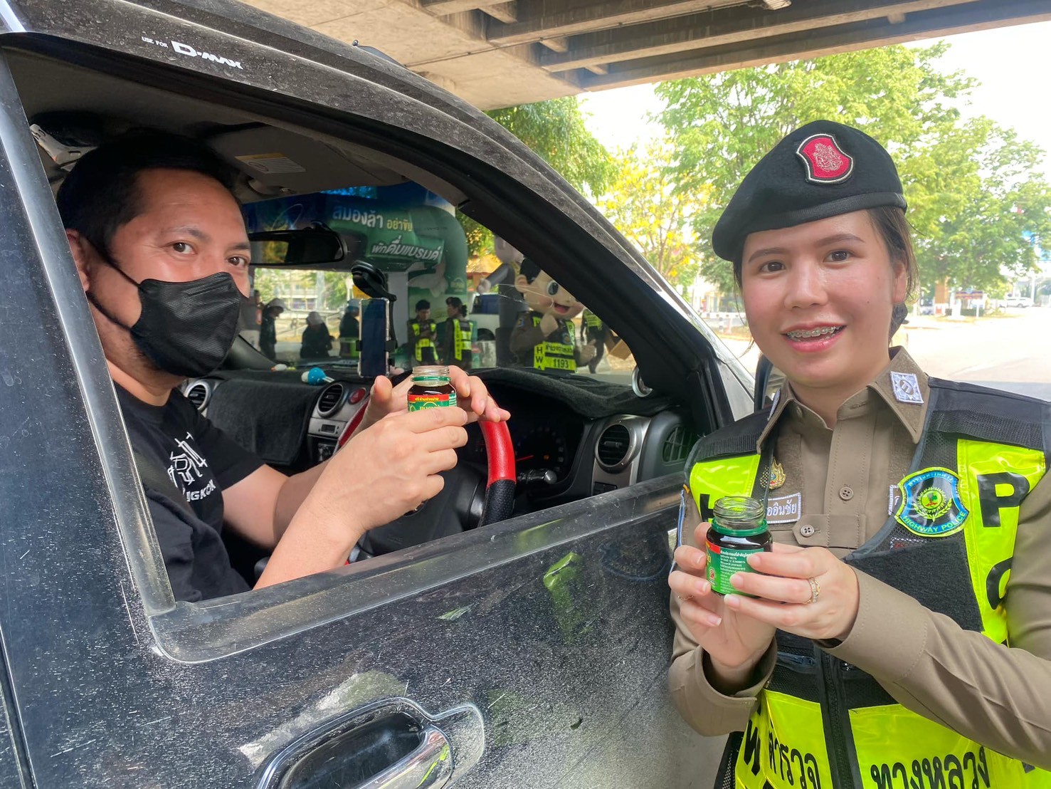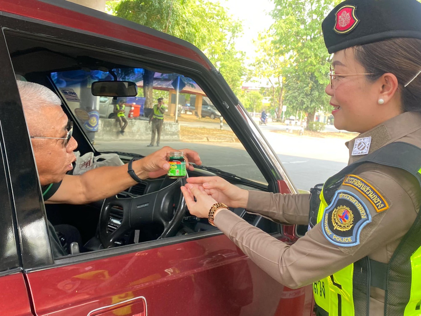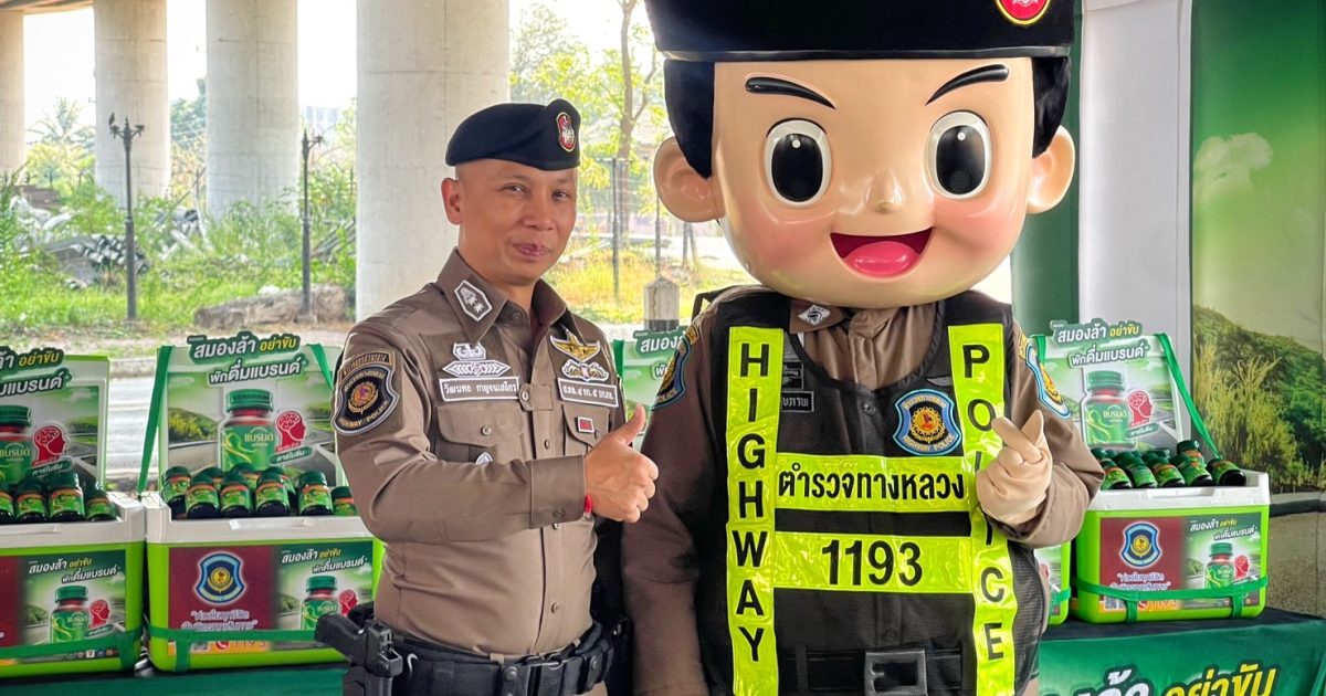 พ.ต.ท.วัฒนพล กาญจนเสถียร.สวญ.ส.ทล.4 กก.5 บก.ทล,พร้อมกำลังเจ้าหน้าที่ตำรวจทางหลวง ร่วมกับพนักงานเจ้าหน้าที่บริษัทแบรนด์ซุปไก่สกัด มีกิจกรรมการแจก “แบรนด์ซุปไก่สกัด” สำหรับผู้เดินทางในช่วงเทศกาลสงกรานต์ พ.ศ 2568
